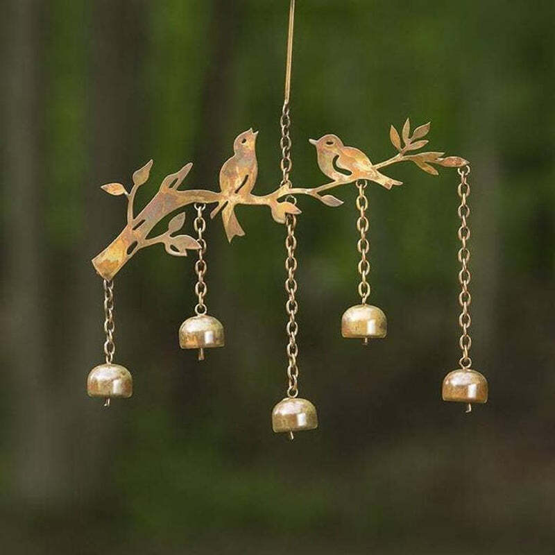 Our handcrafted bird wind chime combines natural aesthetics with gentle bell tones – perfect for balconies, patios, or gardens.
